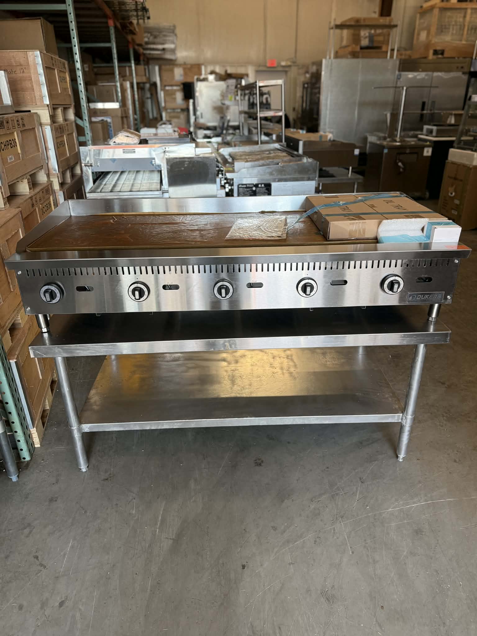 New NATURAL GAS thermostat griddle, it auto controls the temperature you select, so need to mess with temperature! It is brand-new with full manufacturer warranty included. LOWEST PRICING, CALL US to save you $$$ (HUNDREDS)! Dukers MODEL: DCGT60 – TABLE STAND NOT INCLUDED